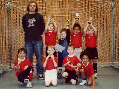 Am 23. Januar fuhren wir - die Kinder, Eltern und unser Trainer Alex - zum Hallenturnier nach Molfsee. Es war das erste Turnier überhaupt für unsere Kinder, umso aufgeregter waren wir alle. Nach anfänglichen Problemen (Erik wollte nicht Torwart sein) war die Stimmung gut und so wurde unsere Mannschaft mit dem 5. Platz von 7 Mannschaften belohnt.